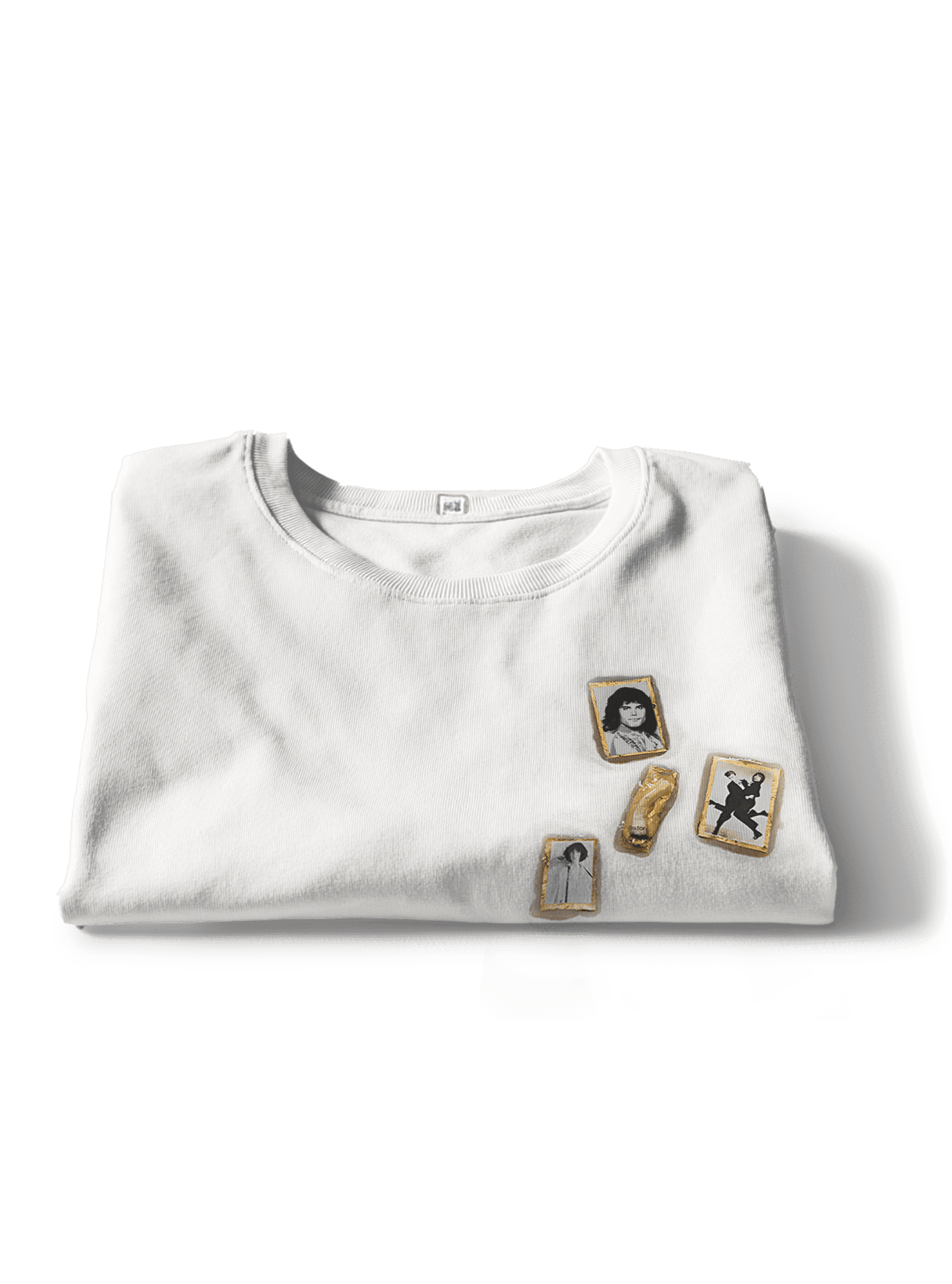 Her craft relies on meticulous techniques shaped by patience and precision. From hand-laid mosaics of fine gold leaf sourced from the historic French manufacturer Laverdure, to charms preserved under crystal-clear Japanese resin engineered to resist yellowing, each piece is built through layered processes that demand care. She also incorporates curated Polaroids inspired by rock icons, transforming them into contemporary relics with tactile depth and lasting presence.
